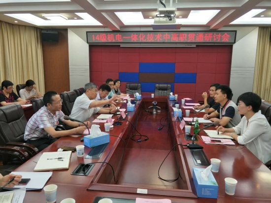 6月21日,2014级机电一体化技术专业中高职贯通研讨会在上海市大众工业学校召开。我院常务副院长董大奎教授,上海市大众工业学校副校长付磊,两校教务处、学生工作处、后勤保卫处、招生与就业处、相关系部及公共课教研室主任等参加了会议。