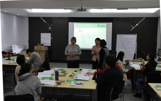 讲授期间,Pennisi教授主要围绕澳大利亚先进的职业教育评价理念和模式,带领我院教师一起学习了澳大利亚职教课程评估的规则、流程、步骤与设计方法,评估工具的设计与开发以及如何建立有效的评估程序和验证方法。Pennisi教授采用讲授、演示、小组讨论、游戏互动等方法展开教学,教学方法生动灵活,课堂气氛热烈,效果显著。