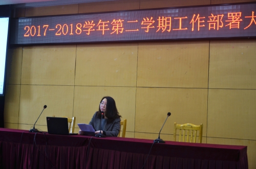董大奎简要回顾了上学期的工作,指出上学期在全校教职员工的共同努力下,按照董事会的要求我们超预期的完成了计划中的各项工作。本学期就自己分管的工作主要做如下部署:一是抬头看路把握方向。他从十九大报告中关于社会主要矛盾的转变以及对高等教育事业的重要论述谈起,明确提出全院要认真学习习近平总书记的重要讲话,增强责任感、使命感和紧迫感;二是学习文件找准落点。他将《关于全面深化新时代教师队伍建设改革的意见》,《国务院办公厅关于深化产教融合的若干意见》,《职业学校校企合作促进办法》这三个重要文件的基本内容和重要意义做了解读与强调,指出学习好、贯彻好这些文件精神就是我们学院今后改革、建设和发展的落脚点;三是低头拉车稳步推进。他指出我们的高职教育就是要遵循人才培养的内在规律、遵循教育教学规律、遵循人才成长规律,在已有工作取得成绩的基础上,继续推进教学诊断与改进、专业建设与管理、专业人才培养计划、思政课程体系建设以及各项质量提升工程等工作的开展。
