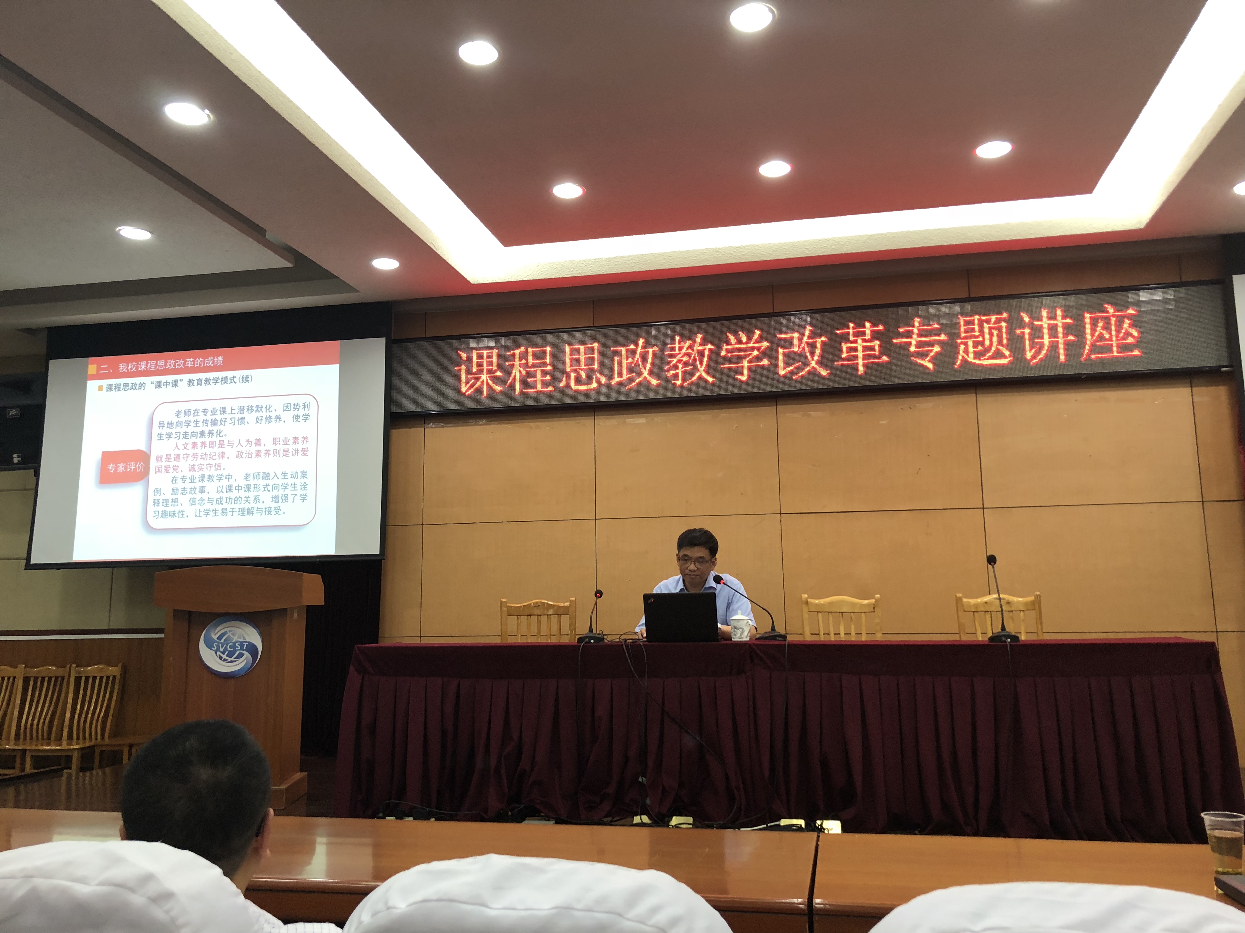 最后,滕教授强调高职院校要通过组织保障、建立健全课程思政管理体制和运行机制等措施不断提高每位教师的育人意识,紧紧围绕培养高素质技能型人才,有效提升广大师生的文化自信,不断增强学校的文化软实力和核心竞争力,从而为学校的跨越式发展奠定坚实的文化基础。