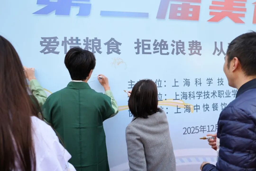校领导率先在爱粮背景板上签名,学生代表紧随其后,一个个签名不仅是一份承诺,更是一份行动宣言,彰显了大家珍惜粮食、反对浪费的决心。