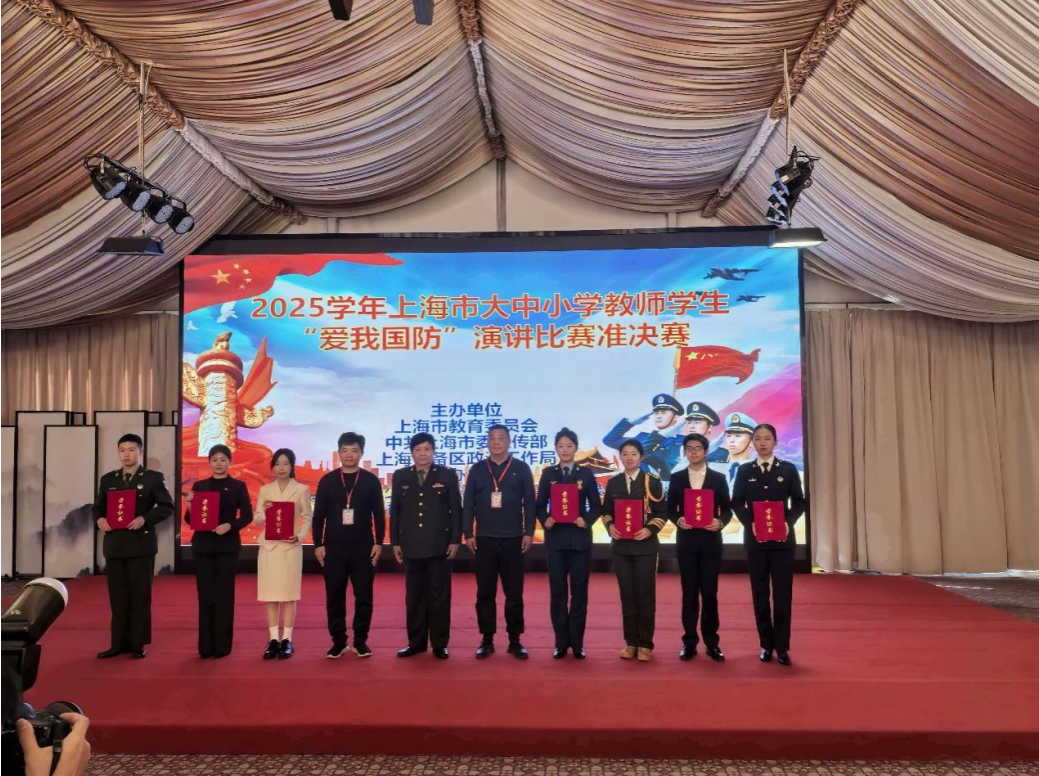 近日,由上海市教育委员会、中共上海市委宣传部、上海警备区政治工作局联合主办的2025学年上海市大中小学校师生“爱我国防”演讲比赛准决赛,在上海市青少年校外活动营地——东方绿舟圆满落幕。经过激烈角逐,我校崔思宇同学凭借出色的表现脱颖而出,荣获二等奖,展现了新时代青年学子深厚的家国情怀与昂扬的精神风貌。