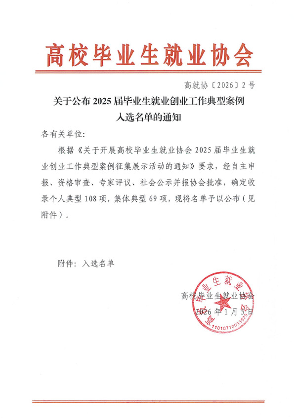喜报 | 我校案例入选高校毕业生就业协会2025届毕业生就业创业工作典型案例