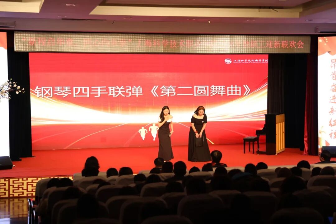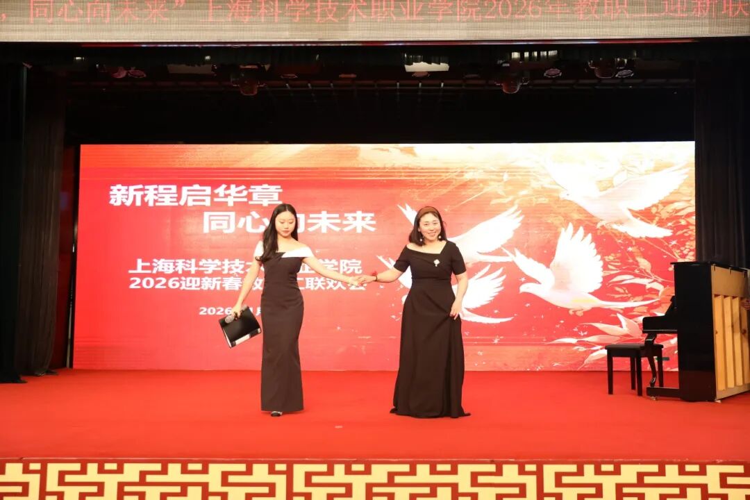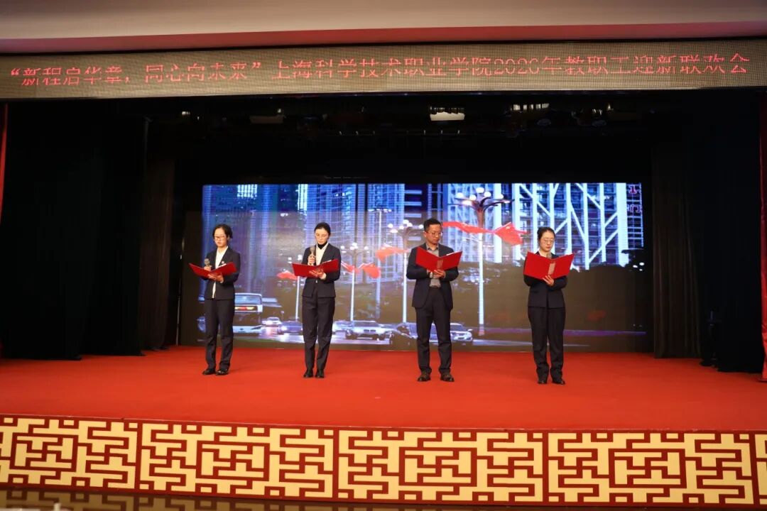 2026年1月23日下午,上海科学技术职业学院三楼报告厅洋溢着喜庆祥和的氛围,以“新程启华章,同心向未来”为主题的2026年教职工迎新联欢会在此举行。学校全体党政班子成员与全体教职工欢聚一堂,共迎新春、共话发展、共启新程。