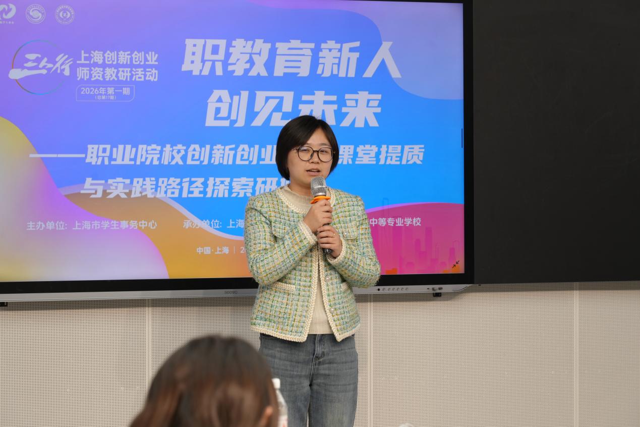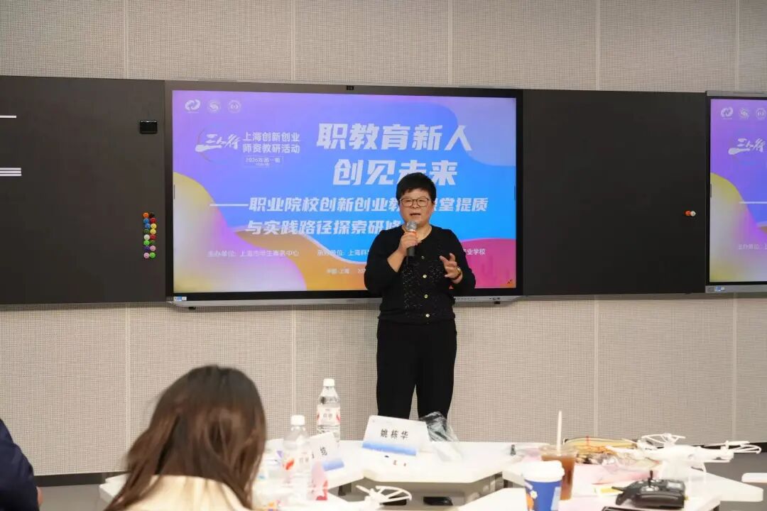 活动伊始,上海市学生事务中心创新创业部部长姚栋华发表致辞,她指出,创新创业教育是职业教育高质量发展的关键支撑,要坚持以课堂提质为核心、以实践育人为导向,持续强化专创融合、产教融合,不断提升师资教学能力与课程建设水平,为培养高素质技术技能型人才筑牢根基。