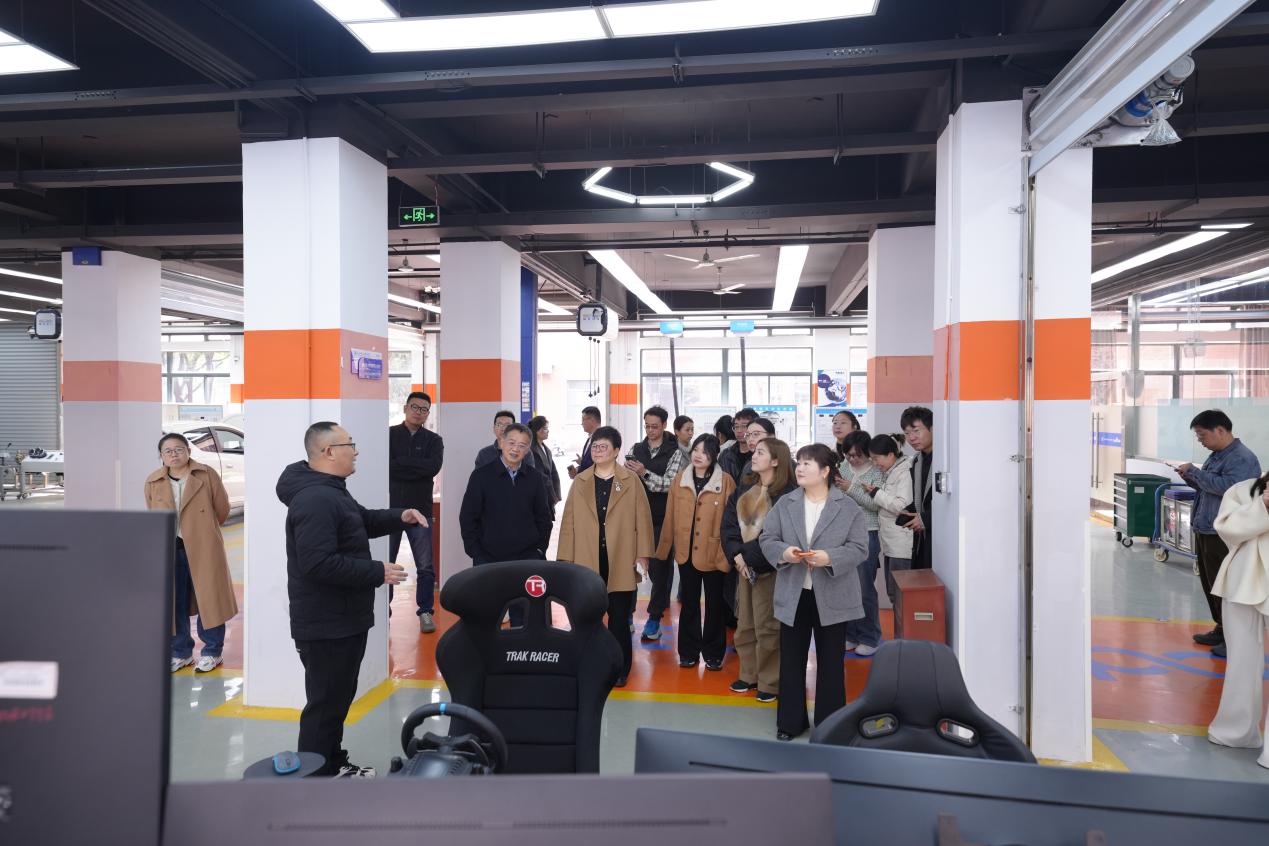 在观摩环节,参会人员共同参观了我校产教融合基地,实地了解了中德SGAVE先进职业教育示范中心、法国施耐德电气绿色低碳产教融合实践中心、百度Apollo智能网联汽车产业学院、德国普锐米勒机床(上海)技术中心、蔚来新能源汽车产教融合实践中心等校企合作平台建设情况,直观感受产教融合赋能创新创业教育的实践成果。